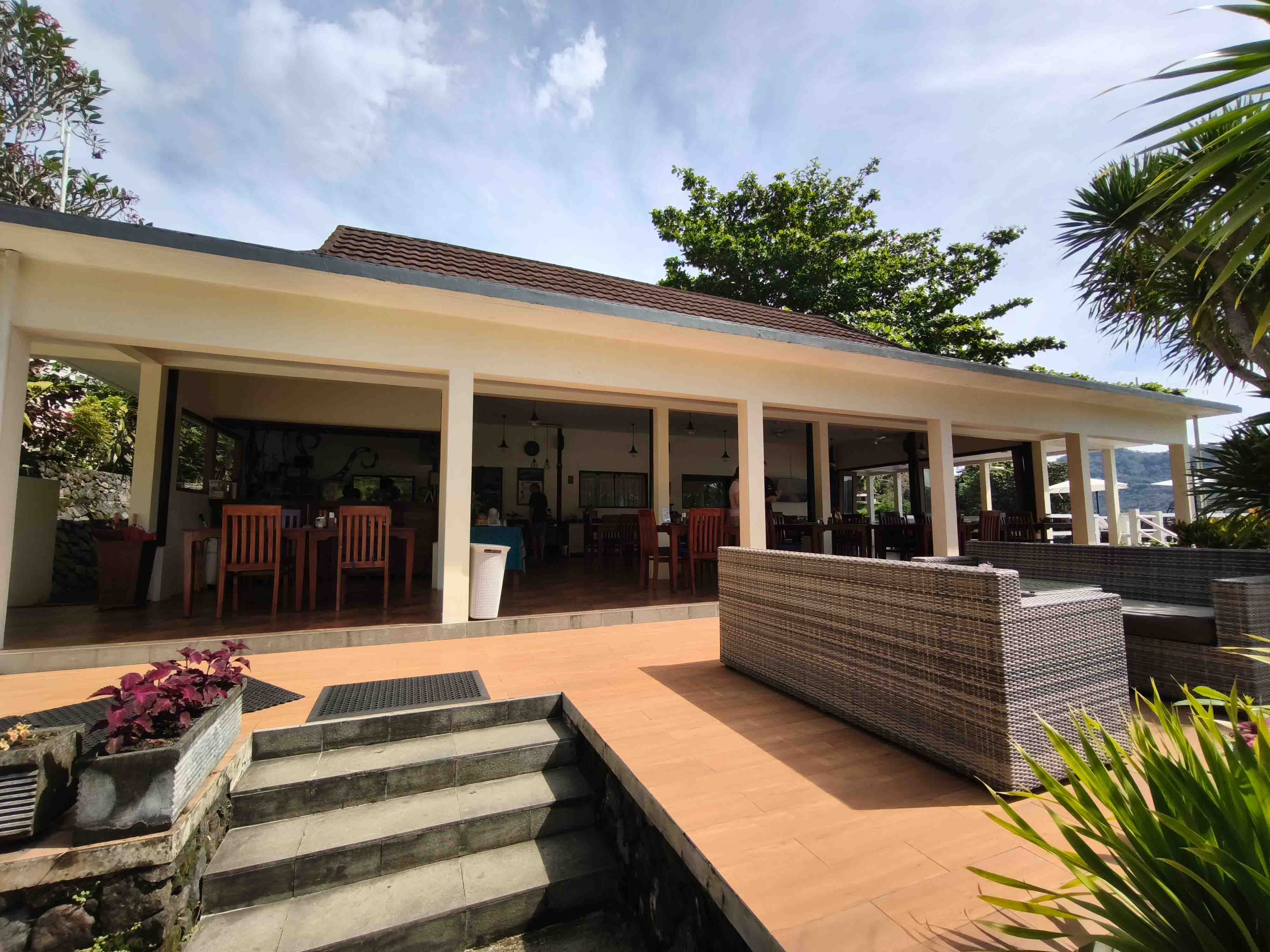 Das Resort und die Bungalows sind auch hier sehr schön. Gewohnt haben wir in einem großen Doppelbungalow mit gemeinsamer Loggia und tollem Ausblick aufs Meer.